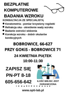 → komputerowe badania wzroku oraz konsultacje ze specjalistą (m.in. refrakcja, badanie ostrości widzenia, dobór okularów)