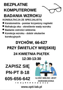 → komputerowe badania wzroku oraz konsultacje ze specjalistą (m.in. refrakcja, badanie ostrości widzenia, dobór okularów)