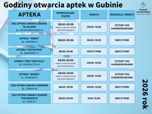 Poniżej także rozkład pracy wszystkich aptek z terenu powiatu krośnieńskiego na 2026 rok.⇓⇓⇓